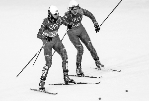 2月21日,平昌冬奧會(huì)越野滑雪女子團(tuán)體短距離自由技術(shù)半決賽在阿爾卑西亞滑雪中心進(jìn)行。由池春雪和李馨組成的中國(guó)隊(duì)以17分35.94秒的成績(jī)排名B組第九無緣決賽。圖為池春雪(右)與李馨在半決賽中。 本報(bào)特派記者 魏征攝