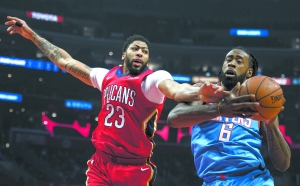 戴維斯(左)和快船隊球員德安德烈·喬丹在比賽中拼搶。 新華社/美聯(lián)