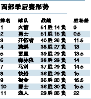最尷尬的還是第二集團(tuán)的球隊(duì),他們?cè)镜哪繕?biāo)都是爭三,目前季后賽席位又都受到了威脅。因此,西部季后賽席位和首輪對(duì)陣的懸念,很大程度上取決于這三支球隊(duì)接下來的表現(xiàn)。