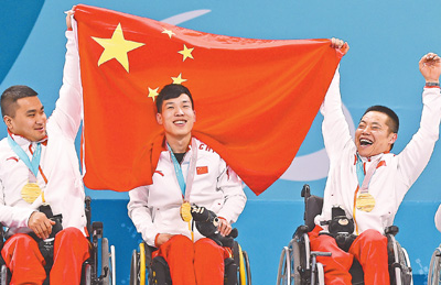 本報韓國江陵3月17日電(記者范佳元、王繼晟)當(dāng)?shù)貢r間3月17日,2018年平昌冬季殘奧會輪椅冰壺決賽在韓國江陵舉行。經(jīng)過9局較量,由王蒙、劉微、陳建新、王海濤、張強(qiáng)5人組成的中國隊6∶5戰(zhàn)勝挪威隊獲得金牌。