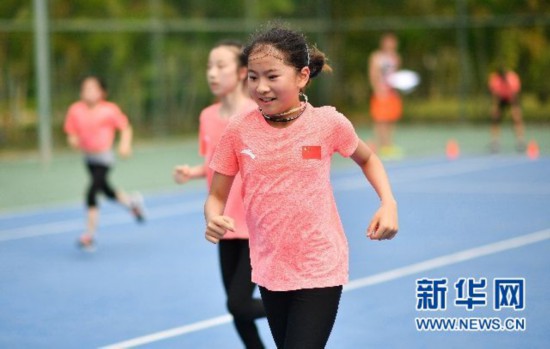 ↑呂佳怡在體能測試中。新華社記者郭程攝
