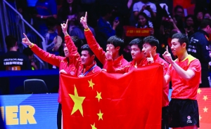 北京時(shí)間5月6日晚,2018年團(tuán)體世乒賽在瑞典哈爾姆斯塔德落下帷幕。在壓軸上演的男團(tuán)決賽中,由馬龍、樊振東和許昕出戰(zhàn)的中國男隊(duì)以3:0橫掃由波爾、菲魯斯和弗朗西斯卡出戰(zhàn)的德國隊(duì),成就團(tuán)體世乒賽史上首次九連冠。此前中國女乒曾經(jīng)兩次在沖擊九連冠時(shí)功虧一簣,這一次魔咒終于被中國男乒打破。