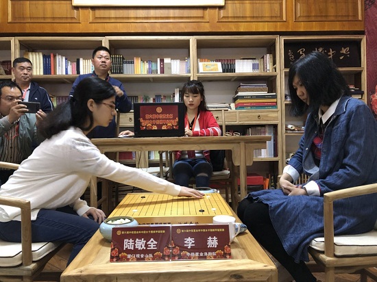 前三輪比賽過后,洛陽隊(duì)和廈門隊(duì)的成績都不太理想,分別積以3分和5分排名倒數(shù)第二和倒數(shù)第三位。因此,本輪比賽對于雙方來講都是非常重要的爭分之戰(zhàn),主將對決李赫與陸敏全兩人下的十分謹(jǐn)慎,棋局進(jìn)程十分慢。李赫在開局右下角獲利巨大,取得優(yōu)勢后出現(xiàn)了誤算,陸敏全憑借左下角一戰(zhàn)獲利,將局勢扳回不少,但李赫仍有優(yōu)勢。眼見局勢變得有些細(xì)微,雙方進(jìn)入收官階段,這時棋局卻突發(fā)意外,李赫由于按鐘時手滑失誤,在讀秒最后關(guān)頭超時。經(jīng)雙方協(xié)調(diào),陸敏全不同意繼續(xù)對弈,按規(guī)則李赫被判超時負(fù),洛陽隊(duì)憾失3分。