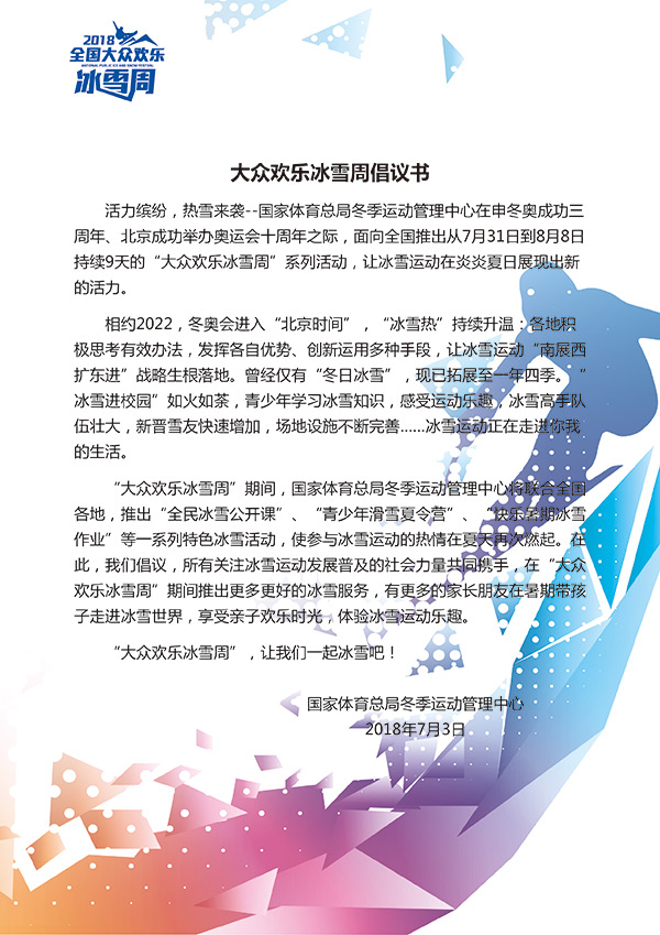 體育總局冬運(yùn)中心大眾歡樂冰雪周倡議書