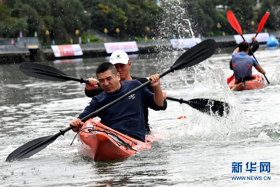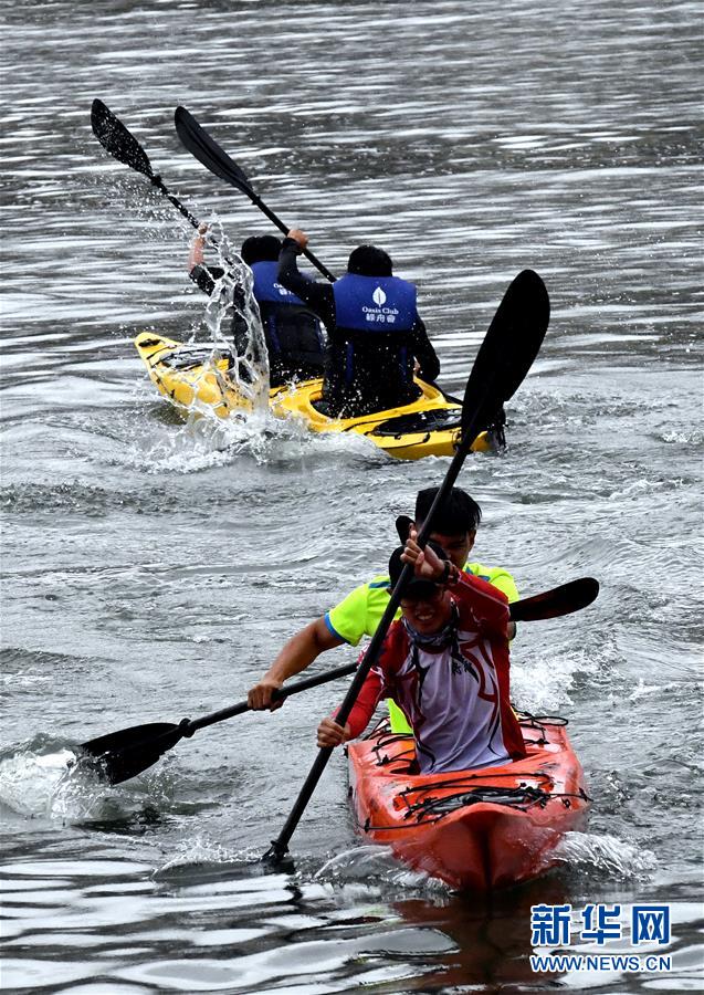 ↑11月16日,皮劃艇接力賽選手在比賽中。 當(dāng)日,2018年福建將樂(lè)皮劃艇趣味賽在將樂(lè)縣金溪河開(kāi)賽。本次比賽設(shè)皮劃艇拔河、皮劃艇接力、槳板競(jìng)渡3個(gè)項(xiàng)目,吸引了福建、吉林等國(guó)內(nèi)120名選手參與。 新華社記者彭張青攝