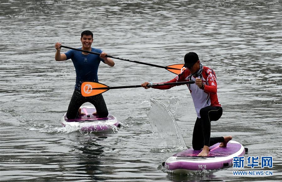 ↑11月16日,皮劃艇拔河賽選手在比賽中。 當(dāng)日,2018年福建將樂(lè)皮劃艇趣味賽在將樂(lè)縣金溪河開(kāi)賽。本次比賽設(shè)皮劃艇拔河、皮劃艇接力、槳板競(jìng)渡3個(gè)項(xiàng)目,吸引了福建、吉林等國(guó)內(nèi)120名選手參與。 新華社記者彭張青攝