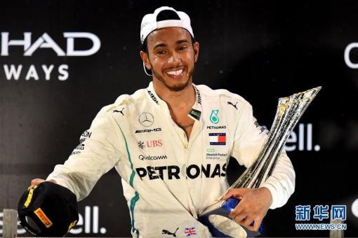 11月25日,漢密爾頓在領(lǐng)獎臺上慶祝奪冠。 當日,2018賽季世界一級方程式賽車錦標賽(F1)最后一站比賽在阿聯(lián)酋阿布扎比結(jié)束爭奪,梅賽德斯車隊英國車手漢密爾頓……