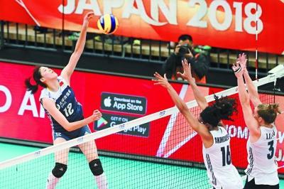 李盈瑩(左)在比賽中扣球。 新華社發(fā) 本報(bào)名古屋電(京報(bào)體育記者 孔寧)昨天下午,2018年女排世錦賽六強(qiáng)決戰(zhàn)首回合在日本名古屋綜合體育館打響,中國(guó)女排在大……