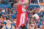 球員在超級(jí)企鵝籃球名人賽比賽中。 9月10日晚,上海東方體育中心。在現(xiàn)場(chǎng)1.2萬(wàn)余名觀眾的吶喊中……