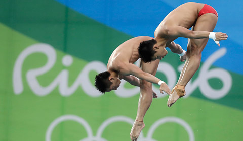 當(dāng)?shù)貢r間8月8日,在里約奧運會男子雙人十米臺決賽中,中國組合林躍/陳艾森一路領(lǐng)先,以巨大優(yōu)勢奪冠,中國隊也實現(xiàn)該項目四連冠。中新網(wǎng)記者 杜洋 攝……