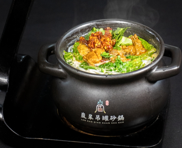 嵐皋吊罐砂鍋是繼魔芋、神仙豆腐等美食后,“嵐皋味道”產(chǎn)業(yè)鏈中的又一新成員。它是嵐皋獨(dú)有的特色美食,吊罐砂鍋以吊罐熬湯燉肉,用砂鍋烹飪煮菜,融合了吊罐肉……