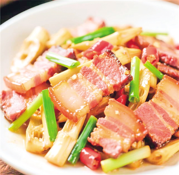 漩渦鎮(zhèn),一個(gè)宛如世外桃源般的地方,這里不僅有層層疊疊、美如畫卷的梯田,還有那令人難以忘懷、獨(dú)具風(fēng)味的美食——竹筍炒臘肉!