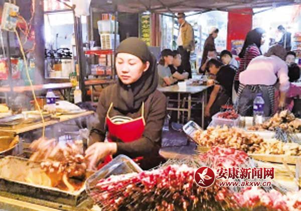 安康烤肉緣起中心廣場(chǎng)的熊偉夜市城,發(fā)揚(yáng)于東關(guān)、鼓樓街、水西門,散布于城市各個(gè)街邊巷道。