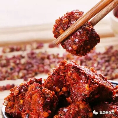 安康,一般這里的人只接受紅腐乳,(因?yàn)榘赘楹颓喔檫是很臭的),每個(gè)縣區(qū)都有自己做豆腐乳的絕招,也有每個(gè)縣的特色,有的地方認(rèn)為豆腐乳越臭越好吃,有的則覺得辣的好吃,甚至有的直接帶毛吃(此處一會(huì)給具體解釋)。
