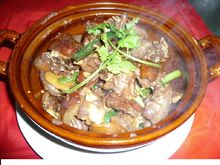 烹制前,要對(duì)竹鼠初加工。一是宰殺前用鐵絲拴住,敲掉尖牙,剁掉利爪,防止傷人。二是宰殺、剝皮。竹鼠皮毛價(jià)值高,不宜用開(kāi)水燙殺拔毛。最好用白酒灌醉后,用短木棒擊頭部致死,便于剝皮。三是剖腹,去掉內(nèi)臟,洗凈。清燉時(shí),先將竹鼠胴體用沸水汆一下,然后剁成塊,加蔥段、姜片一同盛入砂鍋中,將八角、桂皮、丁香、大茴、花椒用紗布包裹扎緊,也放入砂鍋里,再放入少量白糖、胡椒粉、料酒、甜酒、香油、精鹽。用旺火燉至竹鼠肉半熟后,加入洗凈切成小塊的紅白蘿卜、山藥等,以中小火慢慢燉透燉熟,即可食用。