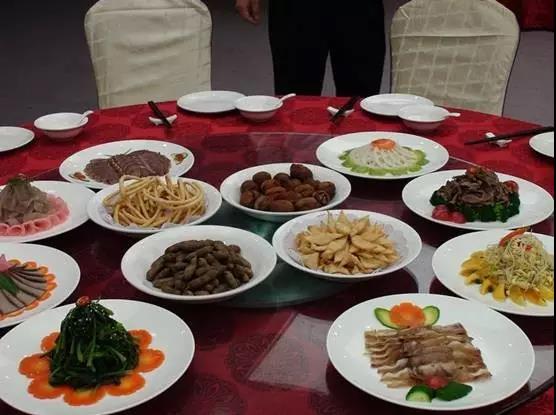 開(kāi)席便有八個(gè)涼菜,中間置一拌涼菜的大盤(pán),將涼菜適量放入中間空盤(pán),再將調(diào)好的拌菜汁子澆上,攪拌均勻便可食用,稱(chēng)之為和菜。第一道熱菜均為湯,并大多為雞絲魷魚(yú)粉絲湯,此道菜香濃無(wú)比,為開(kāi)胃之湯。其他熱菜有蓮菜盒子、羊肉小炒、蘿卜燉羊肉、菜蔬小炒、干豇豆炒臘肉、漢江魚(yú)塊、雞蛋肉糕湯等等。八道菜品雖無(wú)魚(yú)鱉海怪、熊掌鹿鞭、天鵝大雁等稀世奇珍,但卻包含著一縷濃濃的家常氣息,反到更是余味繞梁,數(shù)日不絕。