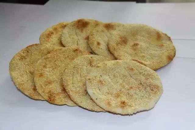 又叫芝麻餅,是一種圓形的烙餅,饃上沾滿芝麻,餅上每隔指許,剁有似斷非斷的刀印。漢陰炕炕饃這一風(fēng)味食品,便于久貯,易于攜帶,在陜南久享盛譽(yù),流傳至今