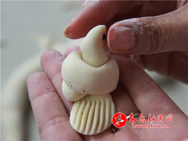 花饃技藝傳承人胡志霞告訴記者:“剛開(kāi)始就是覺(jué)得這個(gè)制作過(guò)程很有趣,一雙手能做出那么多造型,驚訝之余就特別想去學(xué)習(xí)這個(gè)手藝,那時(shí)候做花饃都是由家中長(zhǎng)輩制作,自己在一旁看著不能輕易上手,所以我經(jīng)常都是用地里的泥巴來(lái)練習(xí)做花饃,不知不覺(jué)還真讓我學(xué)會(huì)了不少花饃的樣式。但是現(xiàn)在大家都一門(mén)心思想著掙錢(qián),年輕一代的更是耐不下性子來(lái)學(xué)習(xí)制作花饃,而蒸花饃又是個(gè)費(fèi)神勞力的力氣活,和面、醒面、揉面,既講究干濕均勻,又要注意力道,還要求制作者必須具備精熟的技藝,否則這普通的面團(tuán)很難做成各種栩栩如生的小動(dòng)物或花兒形狀的花饃。”