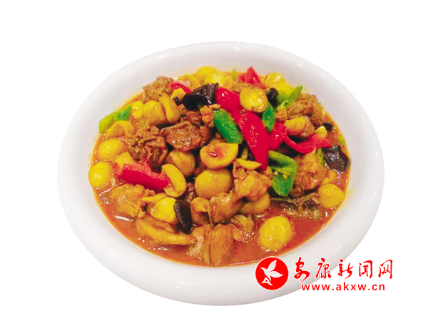 這道特色菜是把散養(yǎng)土雞洗凈剁成小塊,剝好板栗,在鍋里放菜籽油燒紅,加入少許干辣椒、花椒、豆豉炒香,再放入雞塊,大火煸炒變色,調入生抽、少許耗油、冰糖炒勻,汆入沒過雞塊的清水燒開,再放入板栗,火燜15—20分鐘,放入青紅椒調色,收汁裝盤。這道菜雞肉鮮美,板栗香甜,汁濃醇厚,色澤紅亮,真是吃貨們的口福。
