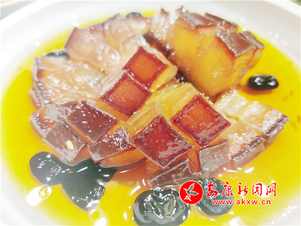 推薦理由:這道菜選用肥瘦相間的五花肉,切成小方塊,配以紅棗、蜜汁調味,大火蒸制成型后,菜品形色如櫻桃般嫣紅誘人,味道酥爛肥美,甜香豐腴、入口即化,是色香味俱全的美味佳肴,擺在席面上,好看又好吃,且顏色喜人,寓意很好,是一道非常適合宴請賓朋時品嘗的菜肴。