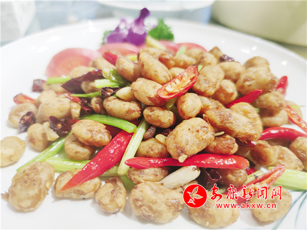 推薦理由:據廚師介紹,香辣白蕓豆是先將干的蕓豆浸泡,然后加入辣椒、香葉、蔥姜等多種調味料把蕓豆煮至熟爛,再將煮好的蕓豆裹上一層面糊下鍋炸至表皮焦黃,佐以嫩芹菜桿、香蒜和紅辣椒炒制,一道酥香可口、內里綿軟的香辣白蕓豆就做好了。