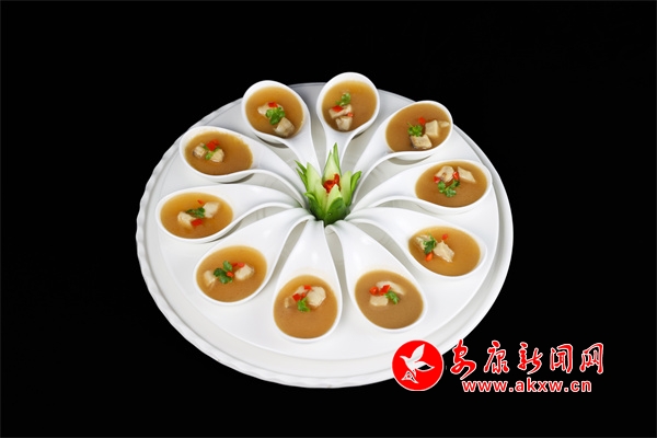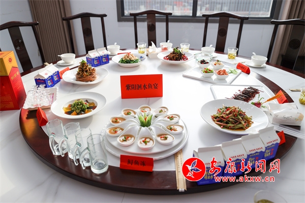“紫陽洄水魚宴”由8個涼菜,即:香酥小魚、干煸牛肉、茶香魚皮、鱘魚凍、撈汁七彩花生、酸辣四拼、雙色變蛋、涼拌折耳根;8個熱菜即:茶香鱘魚、紫蘇魚片、熗鍋鯉魚、釀羊肚菌、辣子雞、臘味三拼、魚頭燉黑豆腐、當(dāng)歸白蘿卜燉羊肉;一個湯菜:魚丸湯;3道小吃即:魚肉餃子、茶香餅、紫菜魚餅;主食:金銀米飯、酸菜面和飯后水果拼盤組成。(通訊員 李勝璋)qmu安康新聞網(wǎng)