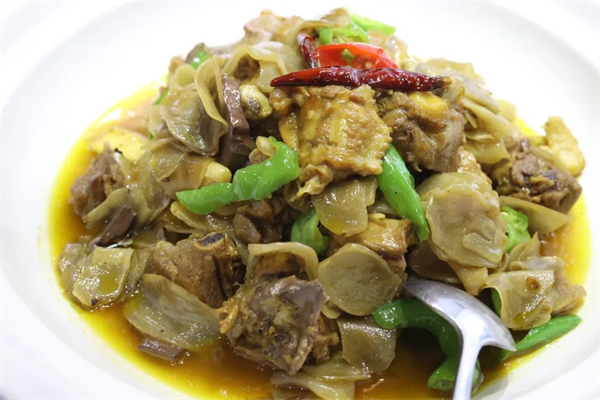 大塊的富硒土雞肉,火候上經(jīng)過(guò)嚴(yán)格把控。品嘗起來(lái)富有嚼勁,這種烹飪手法接近半炒半焗,健康又美味!