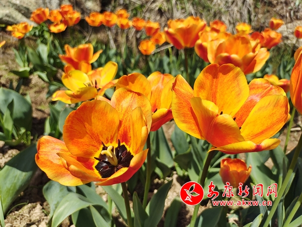 從遠處望去,郁金香整整齊齊地排列著,陣陣微風(fēng)吹過,搖曳生姿。湊近看,郁金香花一朵挨著一朵,花瓣重疊,鮮艷得像要滴出水來。時不時還有幾只蝴蝶蜜蜂縈繞在花間,享受著春天帶來的絲絲甜蜜。在暖陽的照耀下,盛開的花朵隨春風(fēng)搖曳,不同顏色、不同品種的郁金香呈現(xiàn)出了極佳的視覺效果,花叢中,游客三五結(jié)伴,賞花、拍照,享受繁花繞膝之美。