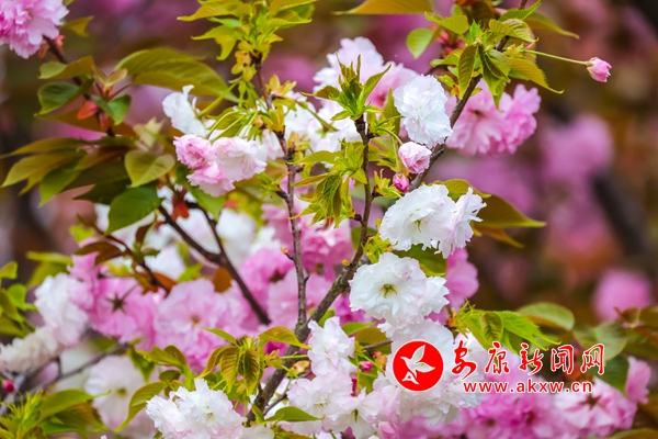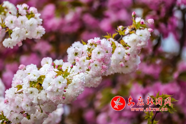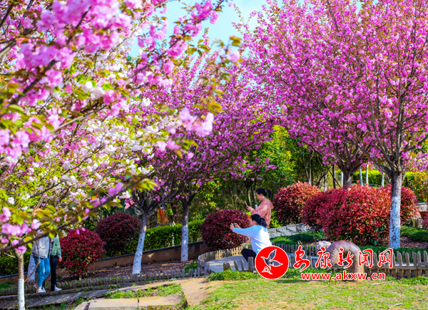 近日,在漢陰縣龍崗公園,成片櫻花競(jìng)相開放,形成一片紅粉為主、白色點(diǎn)綴的爛漫花海,蔚為壯觀。