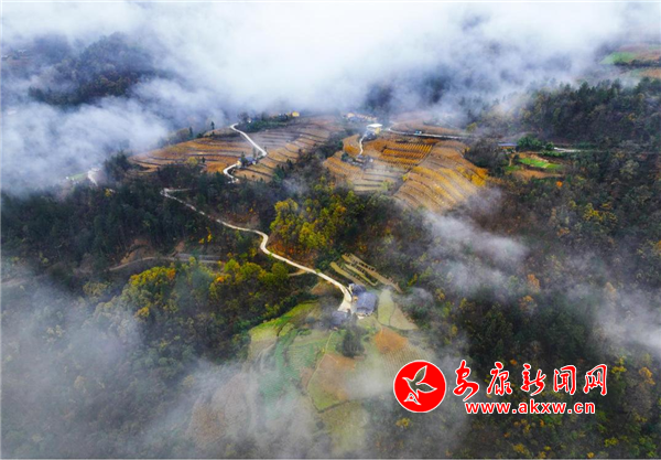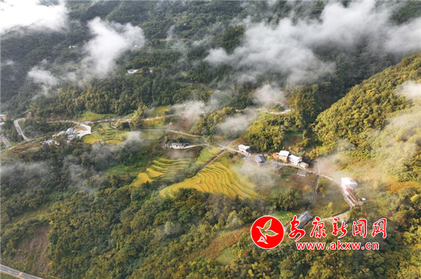 大湖溪位于鎮(zhèn)坪縣城關鎮(zhèn)友誼村,距離縣城大約半小時車程。沿207省道順南江河而下,穿過南江湖大壩就到了谷口。一條嶄新的柏油馬路沿溪流伸向大山深處,茂密的森林覆蓋著山巒,星星點點的農(nóng)舍、民宿集群和土地,若隱若現(xiàn)地掩映在云霧繚繞的群山之間,許多保存完整的巴山古老傳統(tǒng)民居石板屋,炊煙裊裊,與淡淡的晨霧相互交織,構成了一幅渾然天成的水墨畫卷。放飛手中的無人機,我貪婪地捕捉這一幅幅夢幻般的景致。