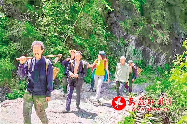 央視編導(dǎo)與向?qū)、采藥人出發(fā)。黎盛勇 攝
