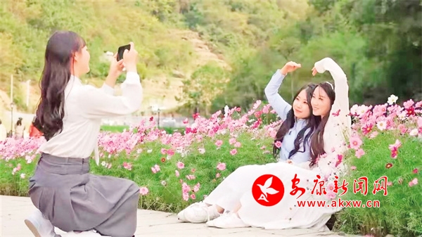 相映成趣游人如織金秋時節(jié),在白河縣構(gòu)朳鎮(zhèn)廟山寨花海產(chǎn)業(yè)園,盛開的格桑花在風(fēng)中搖曳。游客漫步在路上,心緒隨著搖曳的格;ㄒ煌鸱两谇锶盏膶庫o與美好……