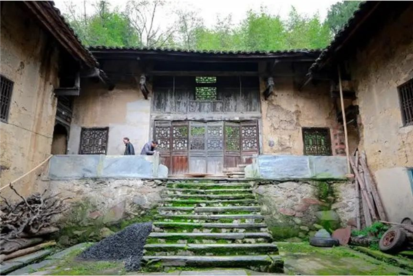 經(jīng)天井院上九步石梯到長(zhǎng)廊,此廊為石栓石欄。正面堂屋為六開(kāi)槅扇門(mén),門(mén)窗為土木雕刻工藝,國(guó)文壽字,古銅錢(qián)、蝙蝠、冬瓜圈、梭子圈、卷草等工藝。此處為黃家紙廠議事之地,巧借地勢(shì)突出氣勢(shì),雖只兩層,卻與兩邊三層廂房等高,借助前面的大天井采光,構(gòu)成院中府第,顯然是吸取了湖廂府衙式建筑理念。從堂屋前的過(guò)道可通往東西兩側(cè)小天井,面向大門(mén),西側(cè)小天井因地勢(shì)縮進(jìn)2米,但建有曬樓(陽(yáng)臺(tái)),雖然天井狹小,但天井里鑿內(nèi)池、留溝防、設(shè)路徑、安石碑,甚至連置盆栽種都應(yīng)有盡有,雖然時(shí)光侵蝕,破損嚴(yán)重,但遺跡清晰可辨,足見(jiàn)主人生活饒有情趣。