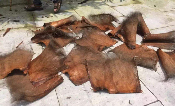 棕樹不擇地勢,大多生長在樹叢里、巖石邊,割棕不僅需要技巧,也是很危險(xiǎn)的活計(jì),上坡前把棕刀兒磨好,吃罷早飯,領(lǐng)著妹妹,帶上草帽子和彎刀,砍岀條路來直通棕樹林,先是自上而下把棕板割開,再抱著棕樹劃一圈,一匹棕就落下來,一圈又一圈,一天下來大概能割兩三斤,留下的那層層年輪,伴著我一年年長高長大,最難受的是暑假割棕時(shí),太陽當(dāng)頭暴曬,棕灰落滿頭發(fā)、臉頰,和著汗水流進(jìn)脖子里又癢又扎,看看也沒別的辦法,只有扯起袖子一擦,臉上抹得跟猴屁股似的,直到日落時(shí)分,索性脫個(gè)凈光,跳進(jìn)溪溝里洗個(gè)痛快,坐在青石頭上晾干,再背上柴禾提著棕回家,享受媽媽變著花樣做的晌午飯。