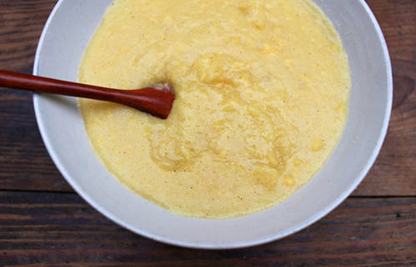 看!那磨得不粗不細(xì)的玉米糝在沸騰的開(kāi)水鍋中上下翻滾,吹出一個(gè)個(gè)密匝匝黃金泡泡,如同平靜的湖面被雨水打過(guò)一樣,泛起一串串漣漪,直到它煮的黏的可以用鍋鏟舀起來(lái),朝碗里倒的能夠連接的時(shí)候,才可以把糊豆兒盛出來(lái)食用。吃糊豆兒的絕配,要數(shù)豆豉、酸菜、酸辣土豆片……盛飯的時(shí)候,最好先用涼水將碗打濕,這樣后面洗碗的時(shí)候才方便快捷;吃的時(shí)候,最好從碗邊一口一口慢慢吃,吃快了會(huì)燙嘴哦,吃完后的碗也是干干凈凈的。糊豆兒,有很多種做法,依據(jù)個(gè)人口味“百搭”。拌一些酸菜煮,叫酸菜糊豆兒;放一些綠豆煮,叫綠豆糊豆兒;加一些紅薯煮,叫紅薯糊豆兒;加上一些時(shí)鮮綠色蔬菜,出來(lái)的糊豆兒猶如一碗翡翠,既好看又好吃?傊梢苑欧欧、加加加、搭搭搭、配配配……只要你喜歡!