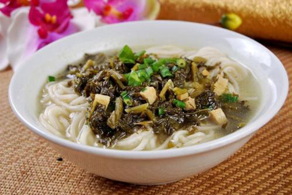 我的家鄉(xiāng)在山水環(huán)繞、滿眼皆綠的秦巴山區(qū)小城——中華太極城——旬陽(yáng)縣。好山好水孕育出了眾多的美味食物,其中最具代表的要數(shù)“酸菜面”,也叫“漿水面”,它當(dāng)之無(wú)愧的坐上了頭把交椅。好吃的酸菜面,自然要有泡的夠酸夠脆的酸菜和筋道的兩摻面,兩摻面是由豌豆面和小麥面和制而成。泡了兩三日的酸菜與手工搟好的兩摻面搭配在一起,一碗熱氣騰騰的酸菜面就盛到你的面前,若是再加上自家做的大蒜辣子,真是讓人胃口大開(kāi)、大口朵頤、精神倍爽。特別是在夏天,或是在酒醉后的第一餐,嚼起清脆的酸菜、筋道的兩摻面、清香的大蒜辣子,頓時(shí)讓人滿口生香、酣暢淋漓、回味無(wú)窮,就會(huì)忍不住要多吃幾口。多種味道混合起來(lái)產(chǎn)生奇異的味覺(jué)沖擊,酸的爽快,辣的夠味。最后,再喝上幾口熱氣騰騰的面湯,直吃得要撐破肚皮才罷休。