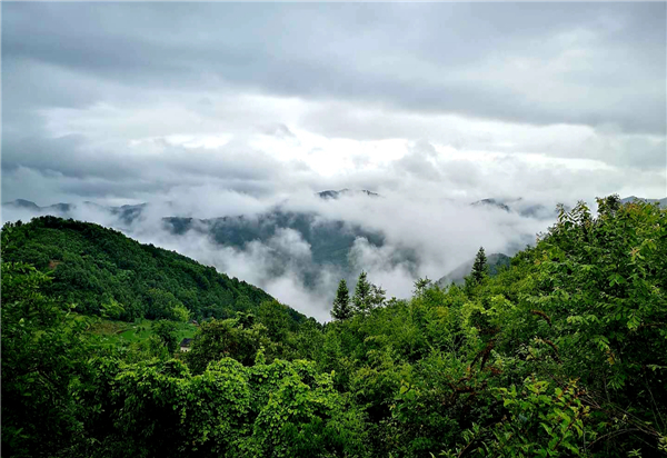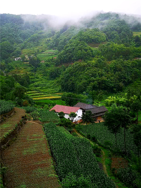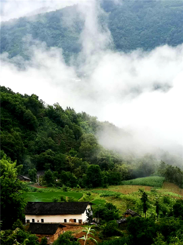 小橋,山澗的溪流;田園,吃草的耕牛;花草,池塘的荷花......一邊淋著淅淅瀝瀝如發(fā)如絲的毛毛細雨,一邊在薄霧朦朧中散步,置身在這天然氧吧中,看天看地看山看水看滿山云霧繚繞,看自然和諧之美,看群山簇擁我于懷抱之中,空曠靜謐中汲取一塵不染的力量與信念。極目所致,思緒萬千,腦海里寄存的是古人話語“非淡泊無以明志,非寧靜無以致遠”,恐怕也只能是綠水青山中來實現自己的理想與愿望吧!