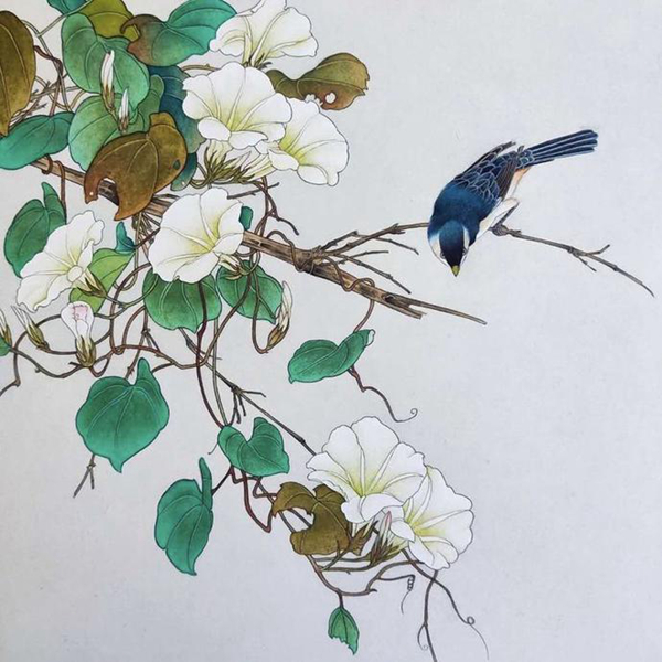 看現(xiàn)在林晶的繪畫,工筆花鳥畫可以說達(dá)到了惟肖惟妙,而且還有自己獨(dú)具的氣質(zhì)內(nèi)涵。她的工筆花鳥畫,已經(jīng)是掌握了精湛的傳統(tǒng)技法,諸如布局、章法、線描,以及對(duì)留白的把控等,都是很到位的。而且她還將個(gè)人審美觀融了進(jìn)去,尤其是秦巴漢水的文人意趣體現(xiàn),更有自己的色彩感覺,而其表現(xiàn)核心仍是傳統(tǒng)的藝術(shù)審美觀。