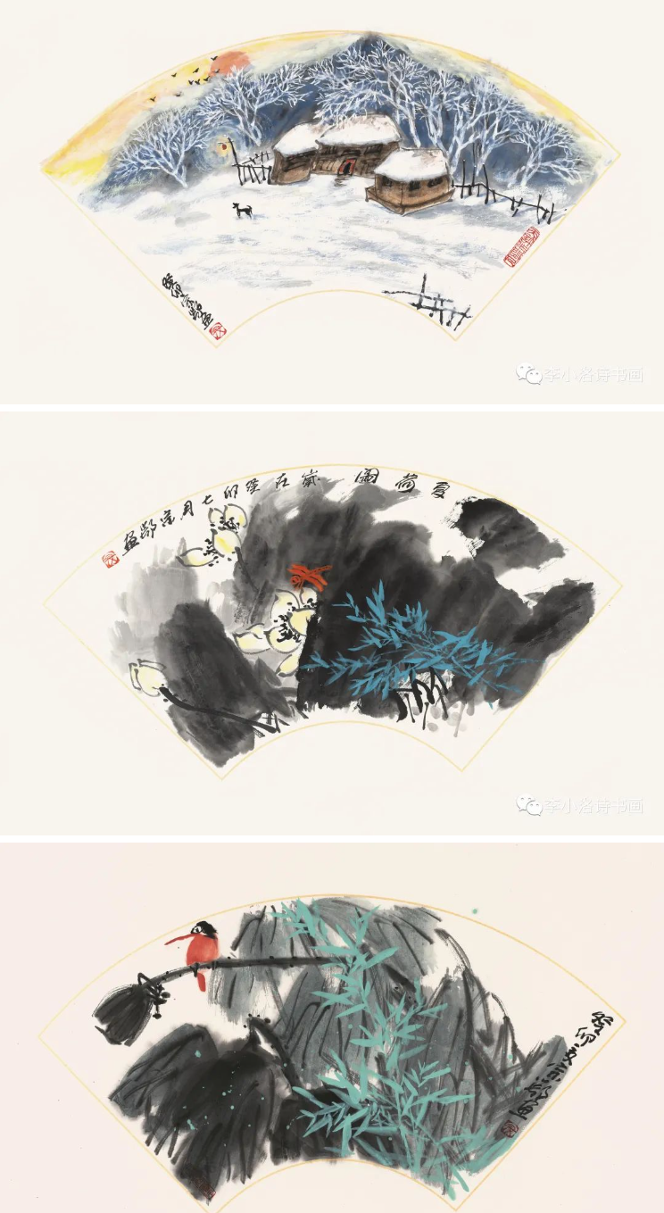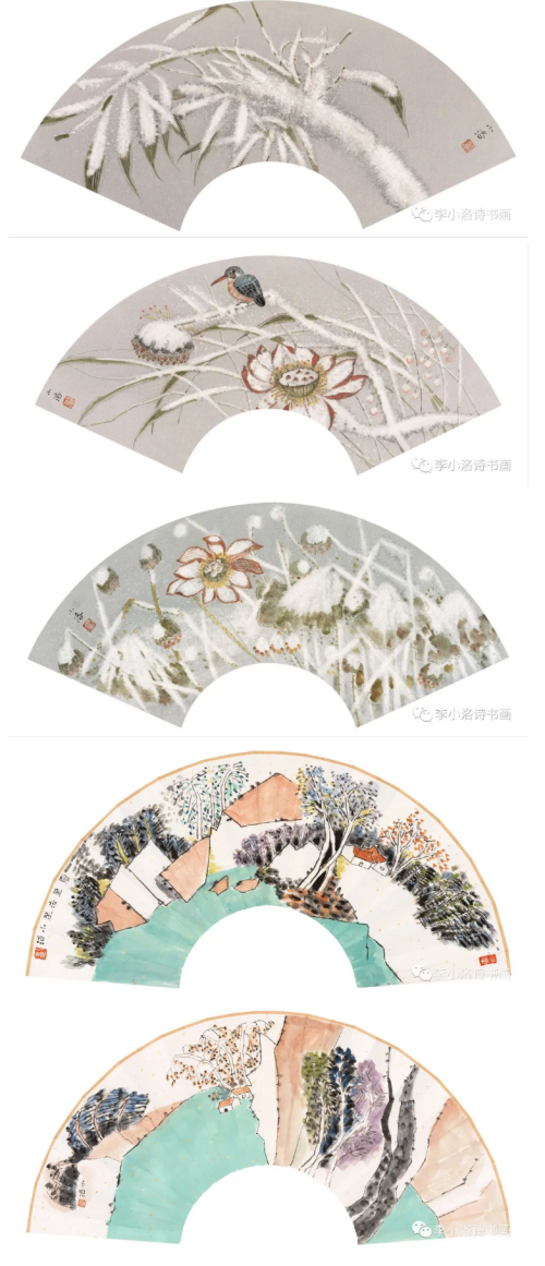 詩(shī)人寇宗鄂和林莽,均為《詩(shī)刊》編委,都曾擔(dān)任過《詩(shī)刊》的編輯部主任。寇宗鄂曾師從著名山水畫家徐北汀,詩(shī)人牛漢,詩(shī)畫兼擅。林莽作為白洋淀詩(shī)群和朦朧詩(shī)重要代表詩(shī)人,詩(shī)畫相融,桃李天下。張瑞田早年寫詩(shī),后來多寫散文和書畫評(píng)論,是當(dāng)今活躍的評(píng)論家和書家。李木馬,李小洛,都曾參加過《詩(shī)刊》社的“青春詩(shī)會(huì)”,就讀魯迅文學(xué)院高研班,在詩(shī)歌和書畫創(chuàng)作上多年努力,取得了一定的成績(jī)……一人一格、一人一品,一扇一意、一扇一味,五位詩(shī)人作家的詩(shī)意筆墨,傳遞著各自對(duì)生活、藝術(shù)與世界的熱愛,認(rèn)知與發(fā)現(xiàn)。君子和而不同,透過一幀幀詩(shī)意盎然的扇面小品,在交相輝映的筆情墨趣中,可以看到他們相互啟迪,感染和照亮的友誼與藝術(shù)追求。