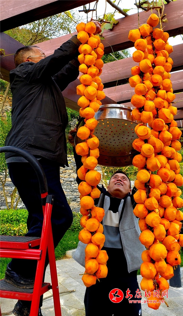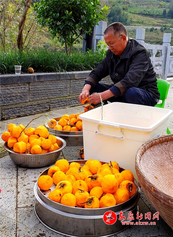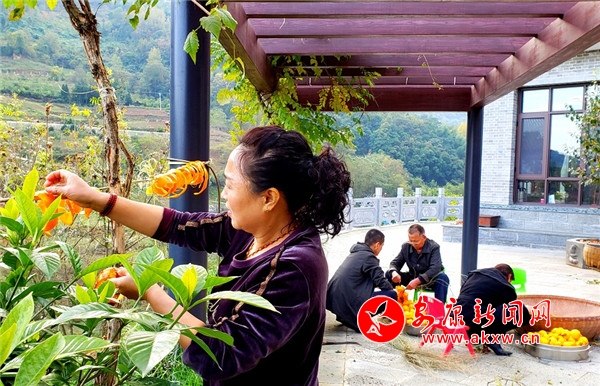 楓葉火了,柿子熟了,救兵糧紅了。旬陽(yáng)縣段家河鎮(zhèn)李家莊村一片繁忙喜景。tYu安康新聞網(wǎng)