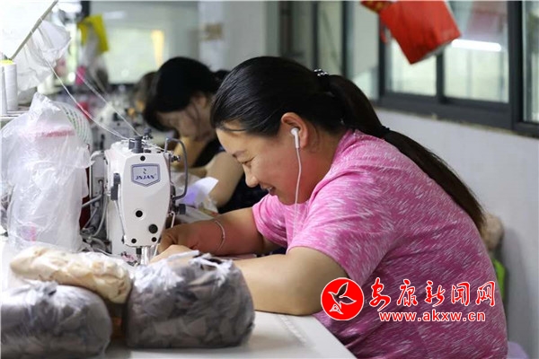 一湖好水滋潤(rùn)一方百姓。興起的社區(qū)工廠,就設(shè)在湖岸不遠(yuǎn)的社區(qū)旁,還沒(méi)等孩子退去睡眼朦朧,縫紉機(jī)便噠噠咔咔地響了起來(lái)。日出而作、日落而息的模式被打破,山里人也從靠天吃飯的農(nóng)民變成了每月領(lǐng)工資的“藍(lán)領(lǐng)”。與水村漁市相映襯的,是一個(gè)個(gè)、一箱箱、一批批呆憨嬌萌的毛絨玩具,帶著高山流水的雅韻,承載著山里人勤勞致富的夢(mèng)想,從漢水出發(fā),一直走到海外。