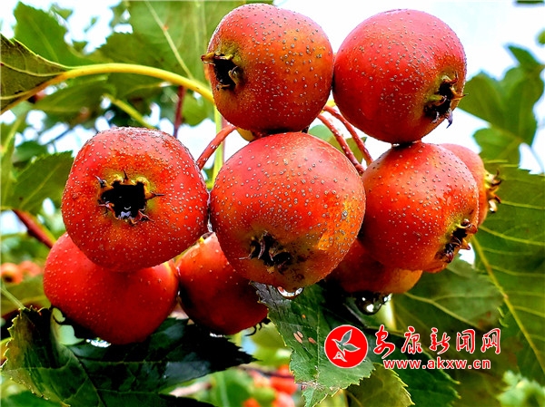 雨后的山楂園,楂樹(shù)掛滿了瑪瑙似的紅果。颯颯秋風(fēng)中,楂果紅彤彤粉嫩嫩,露出一張張迷人的笑臉。壓彎枝頭的果子,你擠著我我擠著你,構(gòu)成了安康秋日里最動(dòng)人的畫(huà)卷。