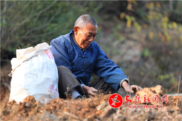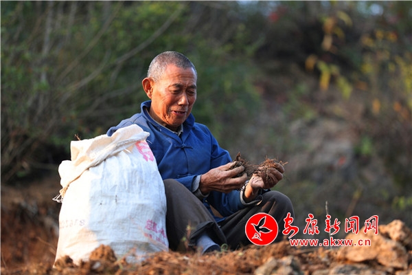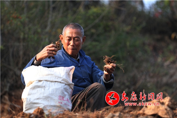 進(jìn)入冬季,是一年的農(nóng)閑時節(jié)。楊孝景卻閑不下來,在親友的幫襯下,開挖收獲6分多地的白術(shù)藥材。他說:“今年能在邊角地里收獲白術(shù)500余斤,按照市場每斤2元左右估計,能為家里多增收1000多元。”
